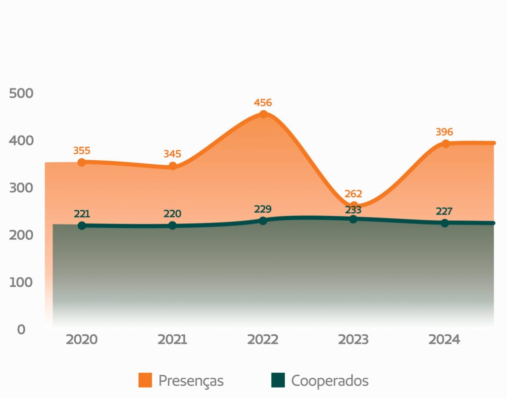 * O percentual de participação dos cooperados é calculado em relação à quantidade de cooperados ativos no momento do convite/convocação.