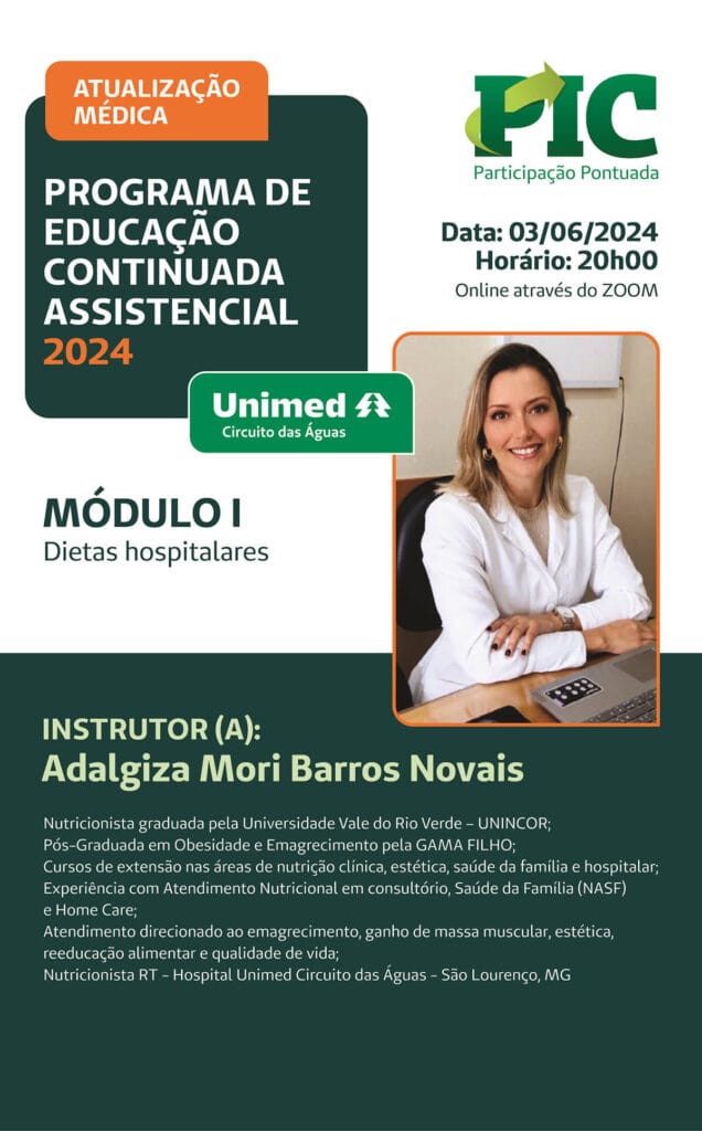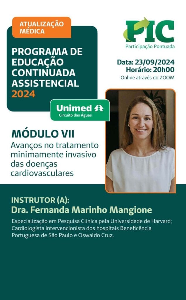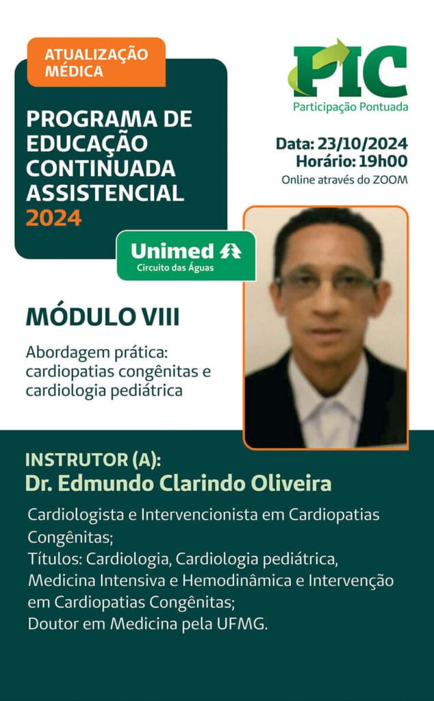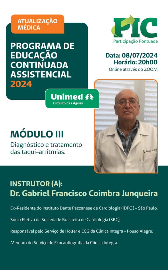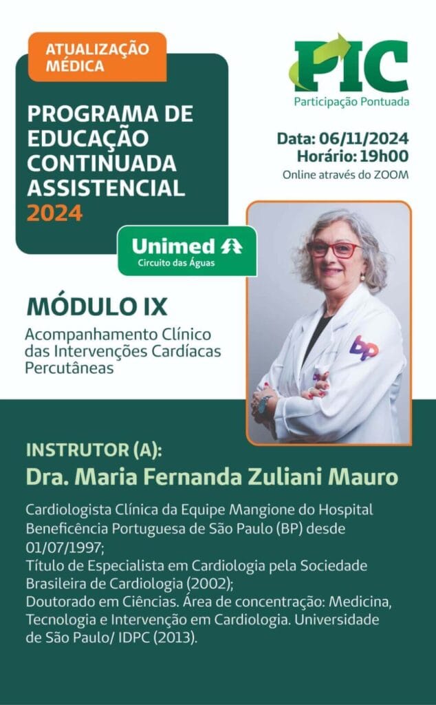 O Programa de Educação Continuada Assistencial – Atualização Médica foi realizado entre junho e novembro de 2024, em 10 módulos, de forma virtual, com participação média de 22 cooperados por módulo.