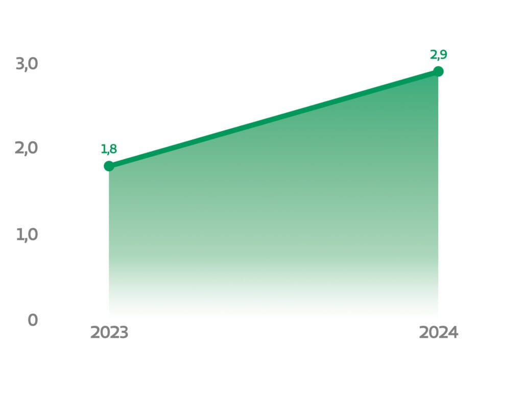 O total do descarte de recicláveis do Hospital Unimed em 2024 foi de 2908,55 Kg.