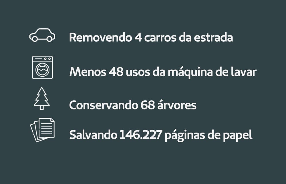 Em 2024, a ferramenta gerou a economia de 133.946 páginas não impressas. Essa economia reflete na redução de resíduos recicláveis e representa 68 árvores preservadas, segundo relatório da Docusign. Na figura abaixo uma representação dos benefícios da utilização de assinaturas digitais em 2024.
