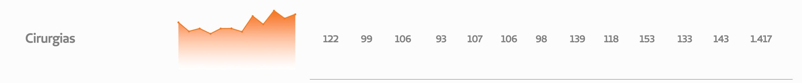 No Centro Cirúrgico, 1416 cirurgias foram realizadas, sendo 686 de pequeno porte, 481 de médio porte e 250 de grande porte.
