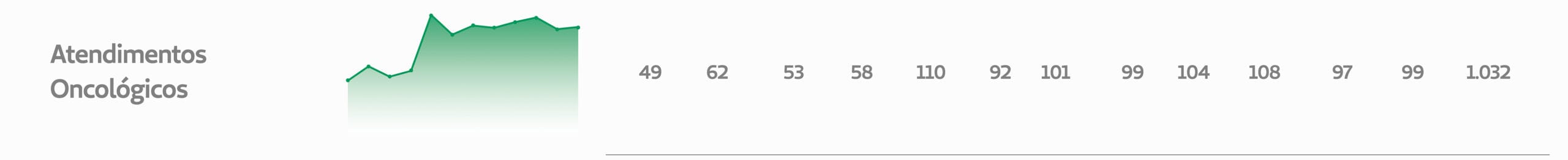 No Centro Oncológico, 1032 procedimentos foram realizados. A média de pacientes em tratamento oncológico foi de 86 por mês.